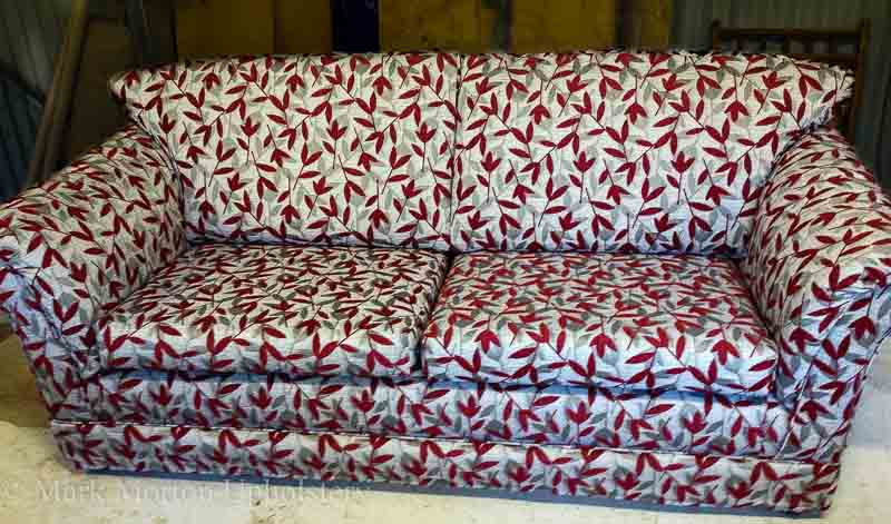 The love seat with the leaf-pattern fabric looked so good that I’ve recommended the fabric to several other clients.
